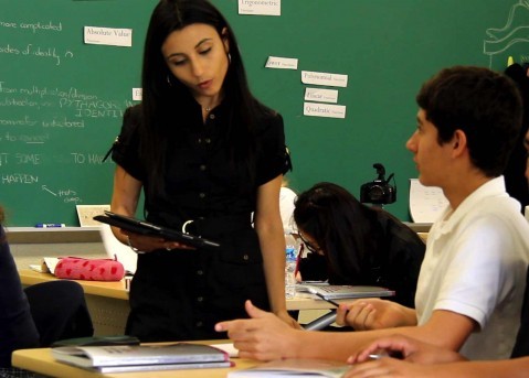 翻轉(zhuǎn)課堂的表現(xiàn)方式不盡相同,我只能講一下我自己對(duì)翻轉(zhuǎn)課堂的定義:在我的課堂上,學(xué)生大多數(shù)都是在家自己的筆記本電腦上,也有人是在iPad上觀看視頻。當(dāng)學(xué)生進(jìn)入學(xué)校上課的時(shí)候,我們的任務(wù)一般都是處理他們遇到的問(wèn)題。通常情況下,我們會(huì)一起深入探討視頻中教授的內(nèi)容。我們會(huì)采用互動(dòng)討論的方式上課,而非單向的講座。在討論中,學(xué)生們分成小組解決問(wèn)題或者解決個(gè)人遇到的問(wèn)題。這些基本上都是學(xué)生們之前可能會(huì)在家庭作業(yè)中遇到的他們無(wú)法解決的問(wèn)題。