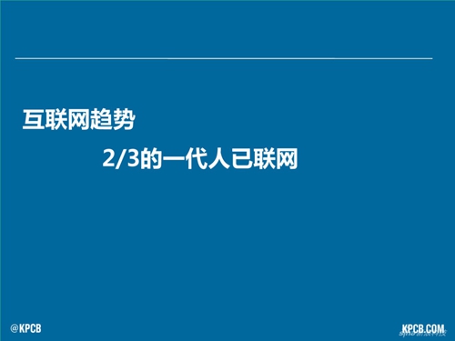 被譽(yù)為“互聯(lián)網(wǎng)女皇”的KPCB合伙人瑪麗·米克(Mary Meeker)今日發(fā)布了年度互聯(lián)網(wǎng)報(bào)告。這是米克連續(xù)第20年發(fā)布互聯(lián)網(wǎng)報(bào)告,報(bào)告涵蓋了廣泛的趨勢(shì)。以上為新浪科技制作的中文版報(bào)告。